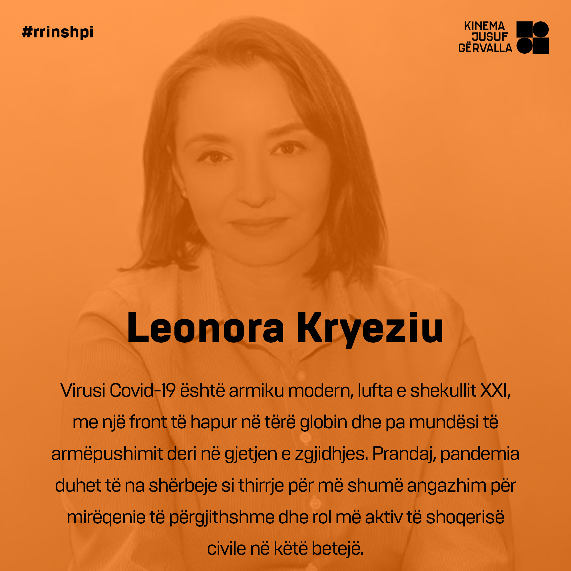 Virusi Covid-19 nuk do të jetë virusi i fundit. Është armiku modern, lufta e shekullit XXI, me një front të hapur në tërë globin dhe pa mundësi të armëpushimit deri në gjetjen e zgjidhjes. Prandaj, pandemia duhet të na shërbeje si thirrje për më shumë angazhim për mireqenie të përgjithshme dhe rol më aktiv të shoqerisë civile në këtë betejë.