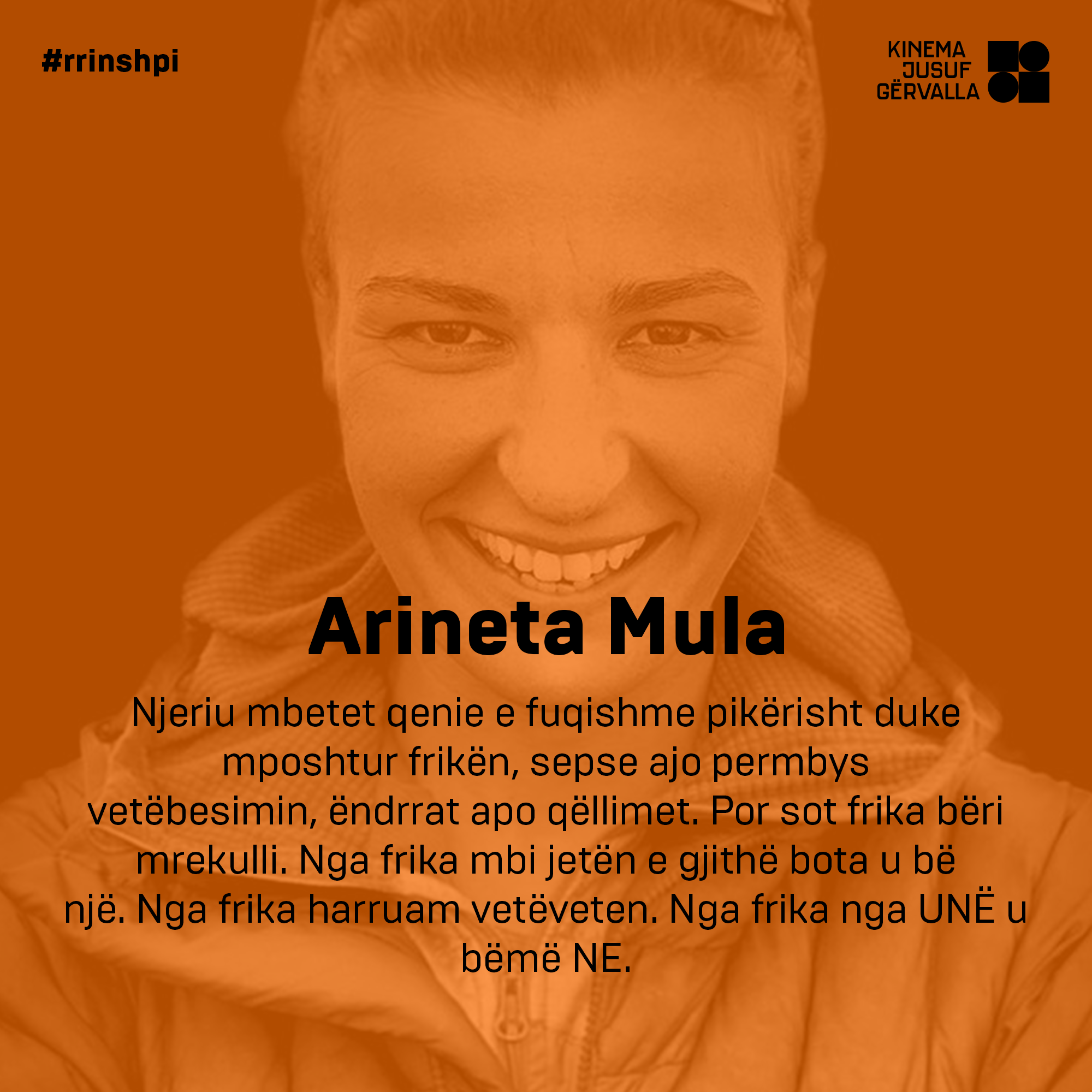 Njeriu mbetet qenie e fuqishme pikërisht duke mposhtur frikën, sepse ajo përmbys vetëbesimin, ëndrrat apo qëllimet. Por sot frika bëri mrekulli. Nga frika mbi jetën e gjithë bota u bë një. Nga frika harruam vetëveten. Nga frika nga UNË u bëmë NE.